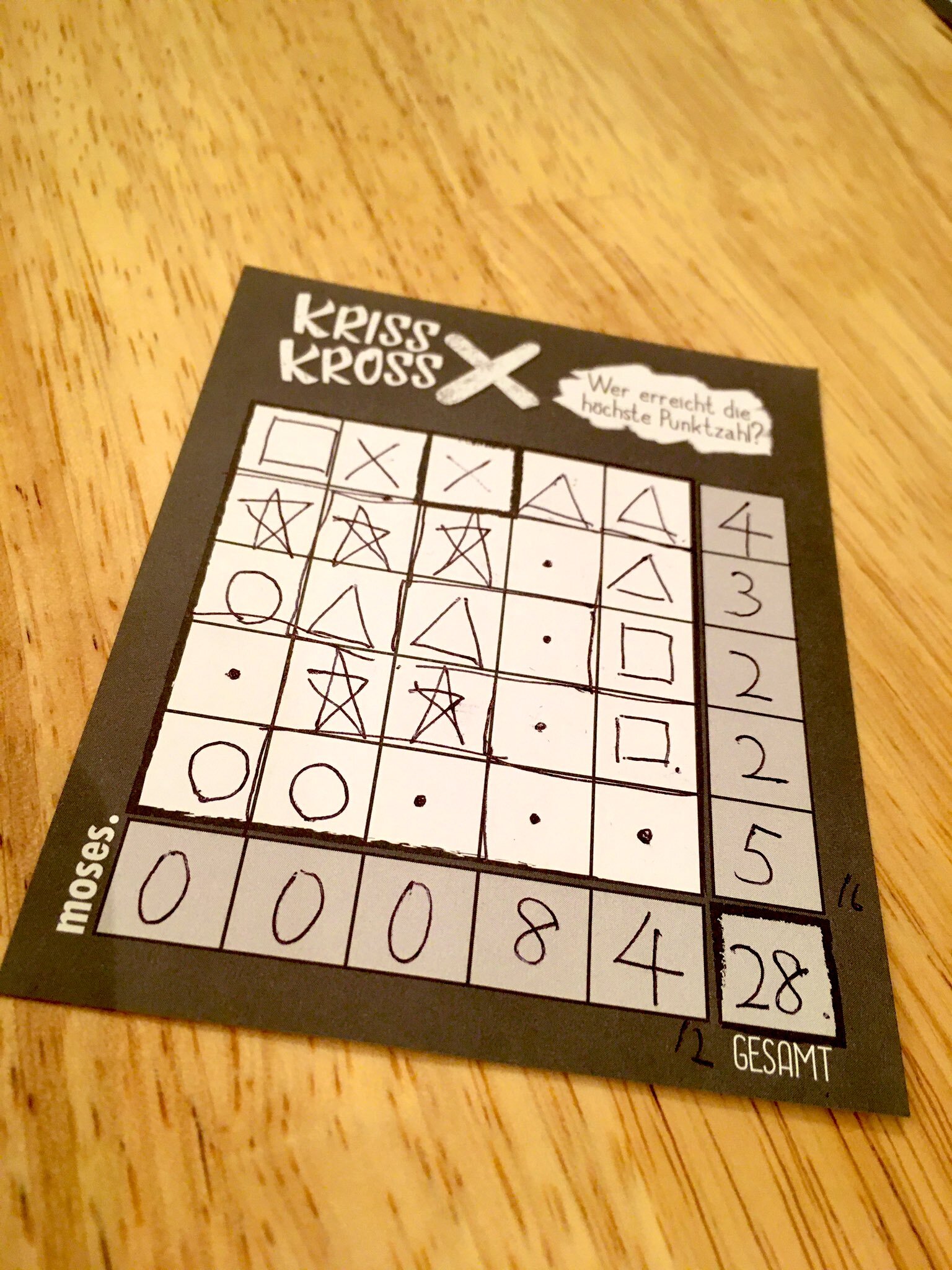 ダイスを二個振って、出目のマークを書いていくだけ。マークが連続すると得点が入るというルール。