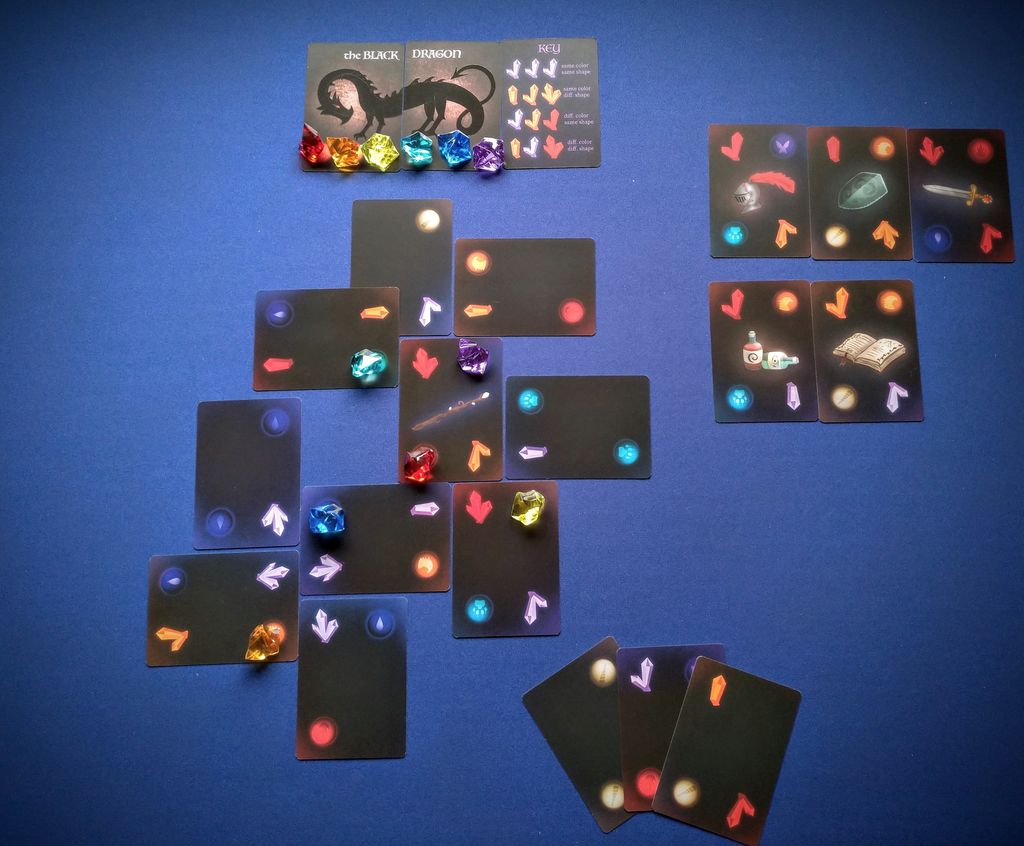 カードを配置してクリスタルを特定の法則で並べることで宝石を獲得していく、ソロ専用のパズルカードゲーム。