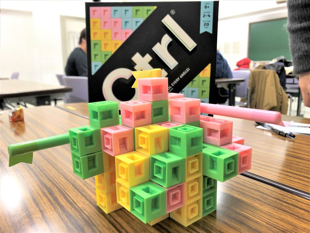これ、上の画像のいちばん上にいるピンクは4方向&上方向の全部で点取れてるんで、5点になりますね。その一個左手前のピンクは4点。完璧に埋もれちゃうと0点だし、ただ1つの面だけ見えててもたった1点。いかに得点の高いキューブを生み出すかが大事ですね。ちゃんと考えられる人と適当に進める人だと絶対に勝敗は覆らないゲームです。
