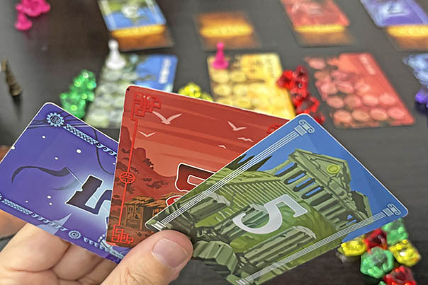 宝石の価値はゲームの最後にならないとわからない。最初に配られたカードや、途中でプレイされるカードにより、どの遺跡の宝の価値が高いかを推測する。