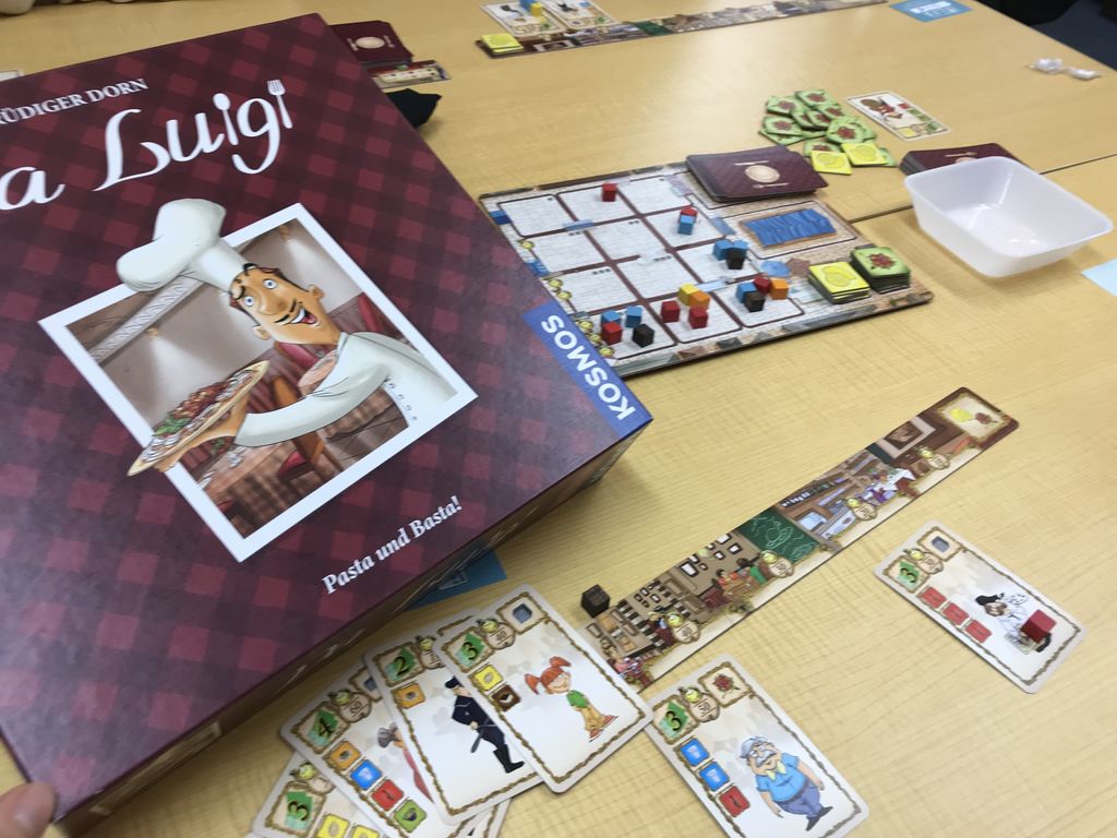 とりあえず優先順位的に料理を提供して、点数に変えて、お客を補充して時々邪魔をする。その展開に飽きてしまった自分がいるのと、得点が見えないので誰を邪魔すればいいのかよくわからない。その割にゲームが長い。とルールに思うことは少しあったのですが、決して総して面白くなかった訳ではないです。