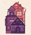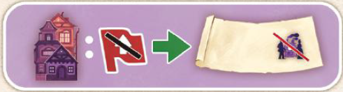 市長デッキからカードを1枚引いて、カードに記載されている地区にトークンを配置します。引いたカードがタウンホール地区(例では*でマークされています)を示している場合、別の地区になるまで引き直します。 |