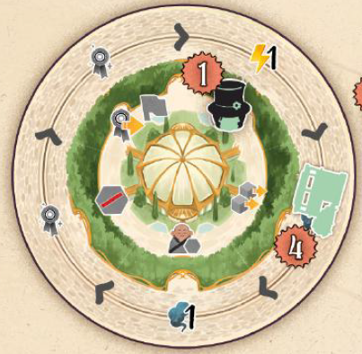 完了したら、あなたの地区にメガマシンがある場合は、反時計回りに1地区移動する必要があります。また、生産トークンを中央の位置にリセットする必要があります。