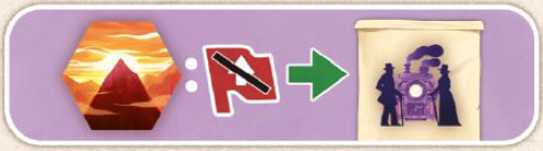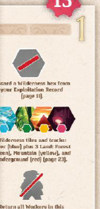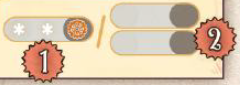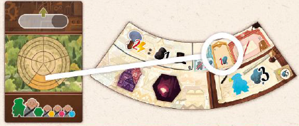 スタートプレイヤーから始めてテーブルの周りを時計回りに、いずれかの原野のトラックの最後から1つ手前の(左のアイコン付きの)スペースが見えるようになるまで、ゲームは続きます[24 ページを参照]。 |