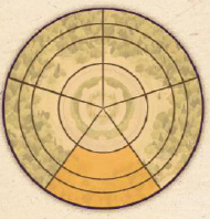 地区 このルールブックは、頻繁に「地区」という言葉が出現します。ダイトシは5つの地区に分かれており、それぞれがピザのスライスの形をしており、ゲーム開始時にはほとんどがまだ建設されていませんが、各「スライス」のすべてがその地区の一部であると見なされます。 |