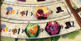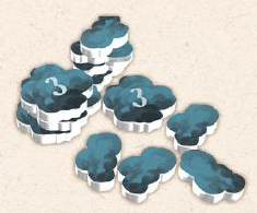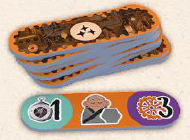 必要に応じて、額面が1または3のトークンを合計値がその数になるように取得できます(例えば3-蒸気トークン1つと1-蒸気トークン4つ)。また、必要に応じていつでも両替できます。 |