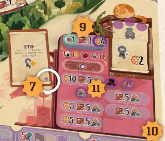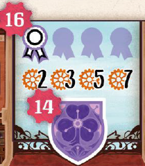 16) 評判マーカーを評判レベルの左端ステップに配置します。 |