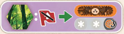 1つのシンボルが、共通サプライから特定の数の蒸気トークンを取得するように指示している場合(この例では7蒸気)、 |