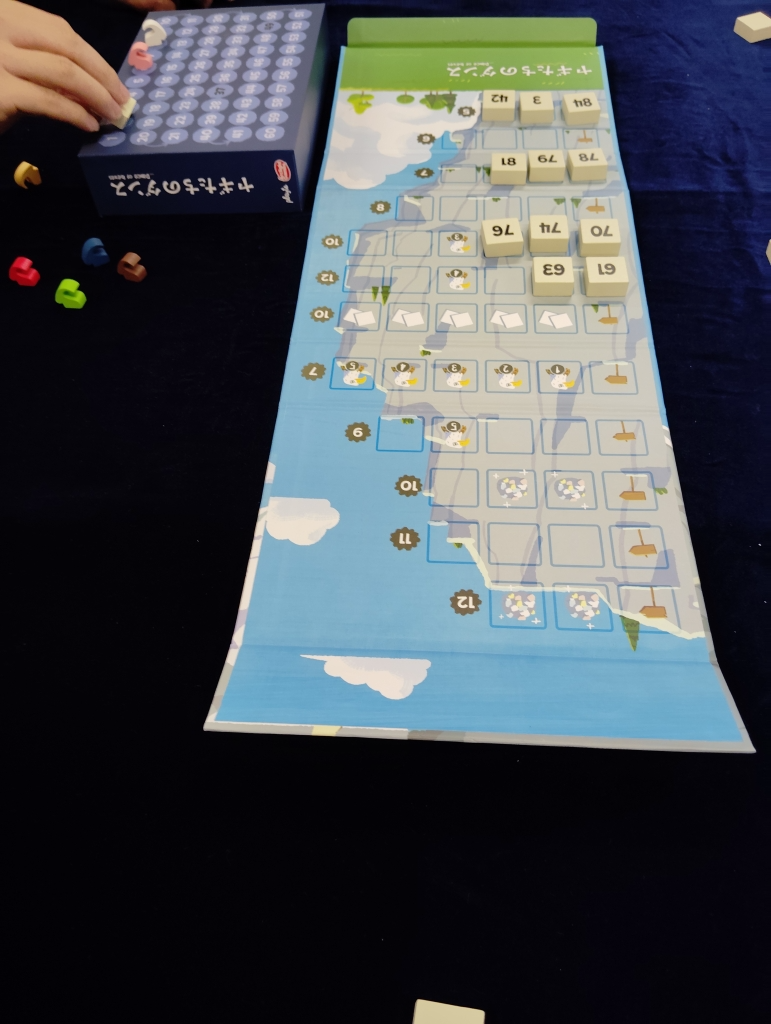 タイルを配置していって、一番端の数字がある場所に配置すると失点になるので、そうならないようにタイル選びをしていきたいけど、人数が多いといろんな流れに呑まれることもあるし、ゲーム中盤ぐらいには2枚同時に公開するからダンスみたいにテンポよくゲームは終わります。