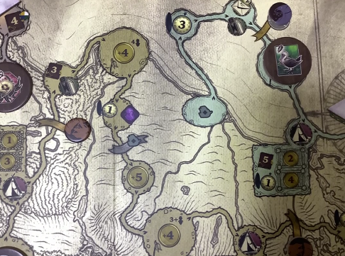 左上から始まり時間を支払うごとに赤いタイルのデメリットを受けることになる。下に駒があると左のタイルのデメリットを全てひっかぶるだけである上に、最終得点でマイナスをうけるという。