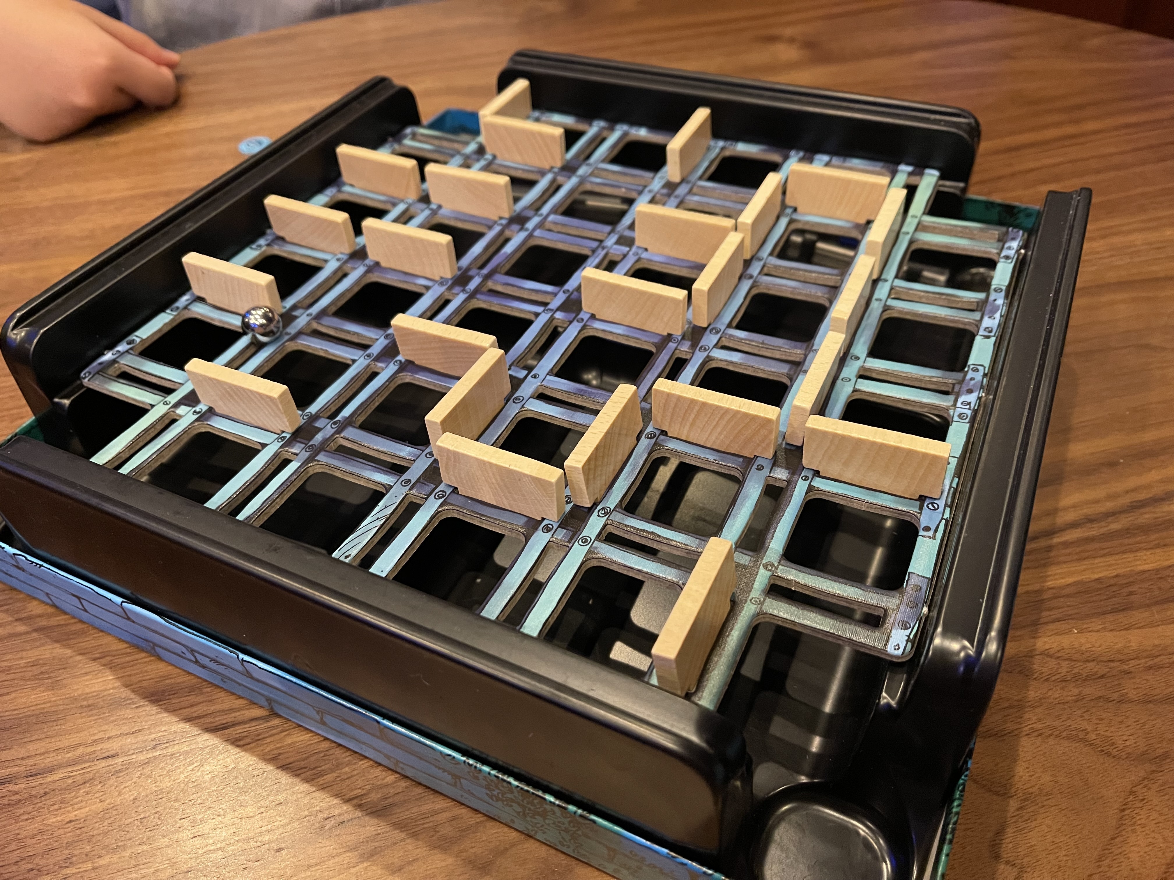 遊び方は簡単で最初に迷宮に板を数枚配置し、そこに上から迷宮ボードで隠して袋の中にあるアイテムを取りそれを迷宮迷路を磁石でくっついてる玉を落とさないように獲得しに行くゲームです。