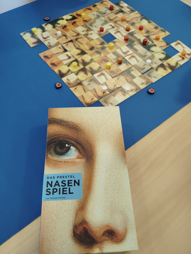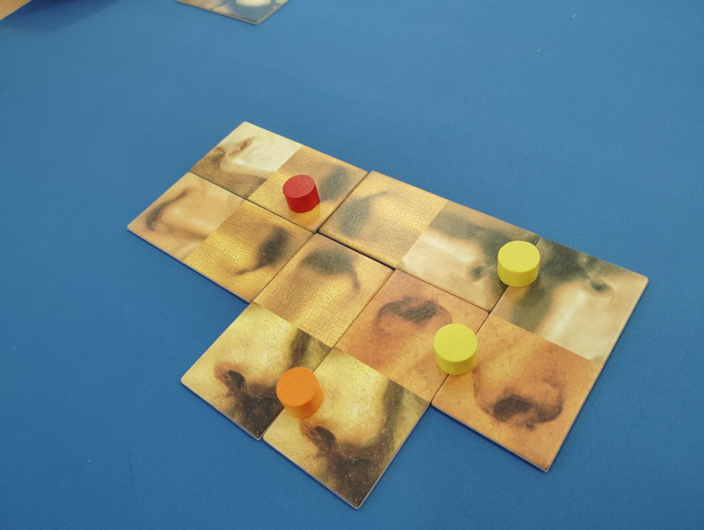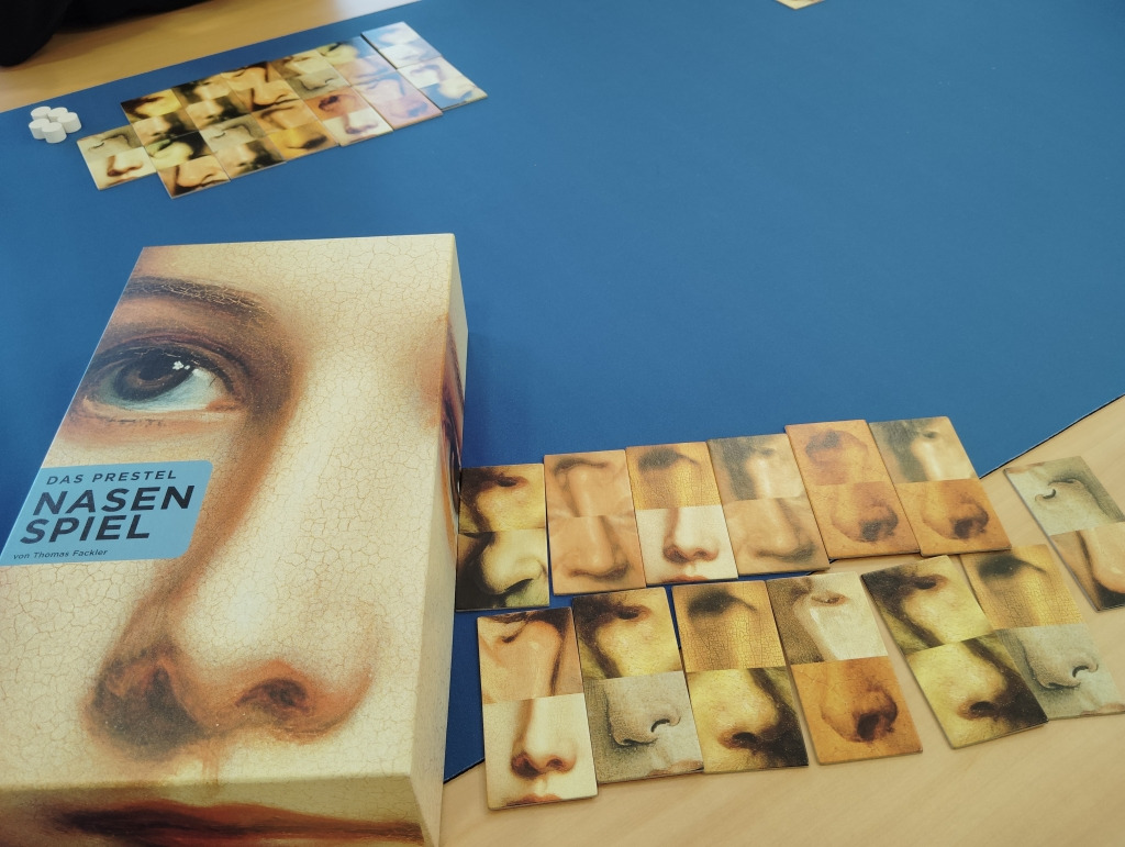ゲーム的には、同じ種類の鼻タイルを隣接させて配置していきエリアを主張していき、最終的に主張したエリアの合計数が多いと勝ち。