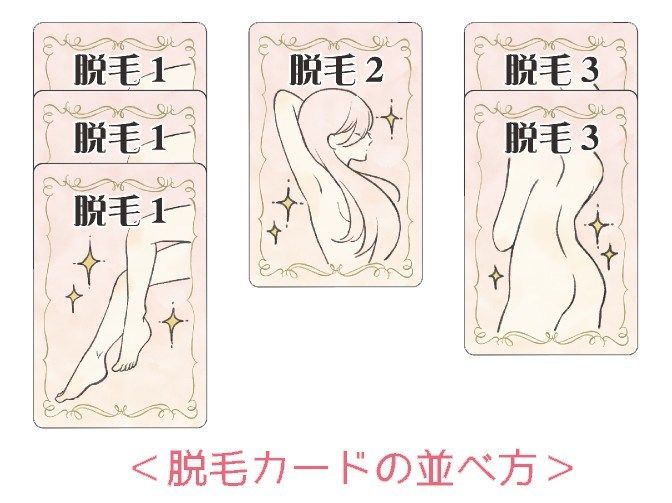 1.カードの準備を行い、ムダ毛カードを1枚ずつ引きます。