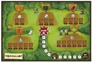 サイコロで2の目を選んだ場合、新芽チップは猟師マスに配置されます。その2つのマスが貯まった場合、サル駒かイノシシ駒か選び、その駒を一マス下げてください。