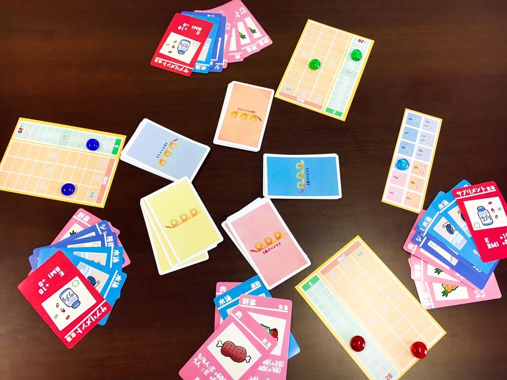 全員で協力したり、たまに出し抜いたりしながらBMIを減らしていくゲーム。1年を月ごとに分けた12ターンでゲームが終わるが、今が何月かを表すボードがあってわかりやすく、1年間かけてのダイエットの様子が忠実に再現されており、素晴らしい。