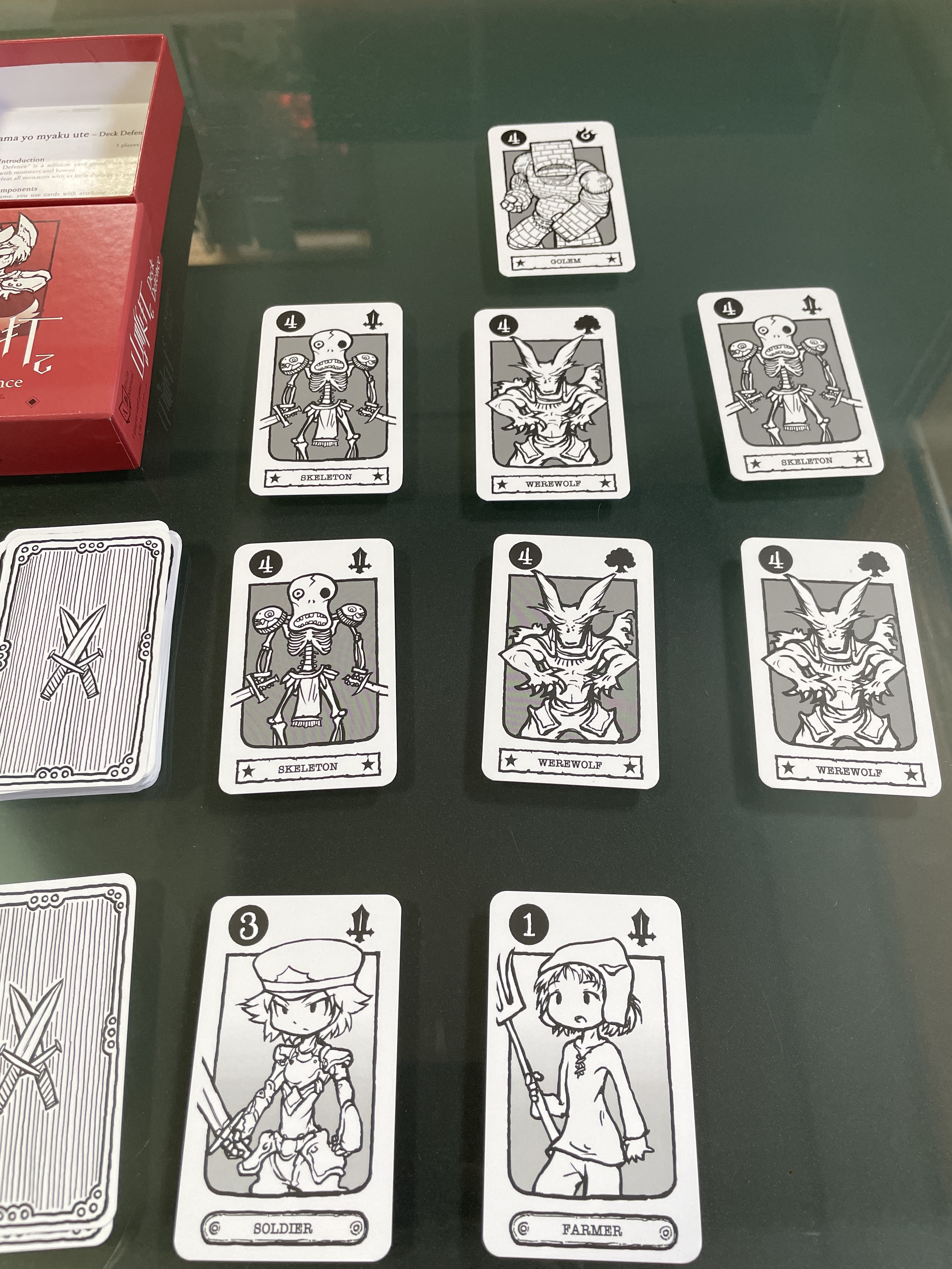 他の人が書いてる通りプレイ感はソリティアに近いです。ちゃんとカードが混じってるといけますが、適当にシャッフルすると偏って詰みます。シャッフルはちゃんとしましょう!