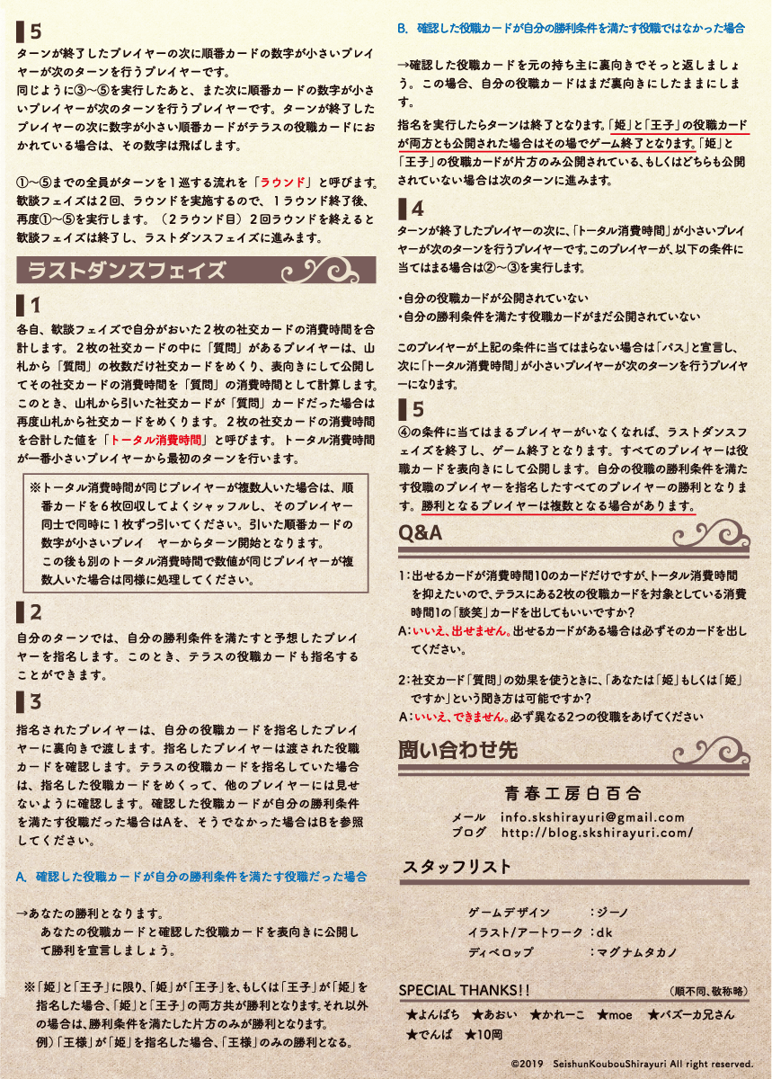ラストダンスは仮面のあなたと青春工房白百合さんのルール/インスト