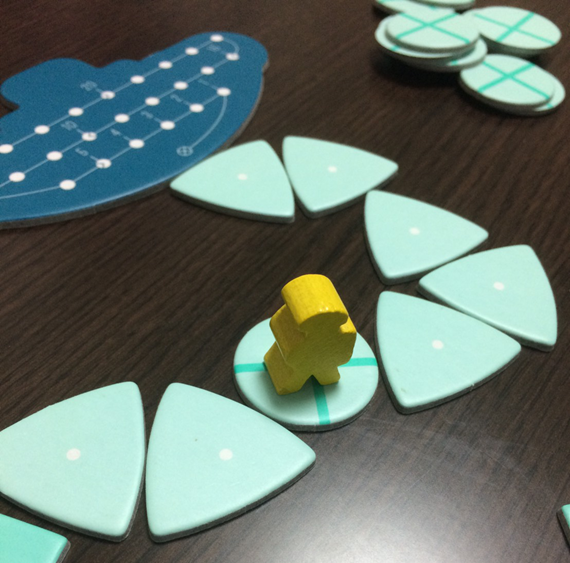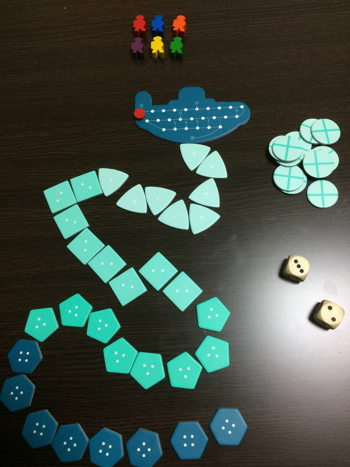 4. 各プレイヤーで使用するコマの色を決めて潜水艦の脇においておきます