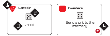 全般:「Send a unit to the Infirmary」と書かれた脅威が起動した場合、ダイスを一つ医務室に移動させる