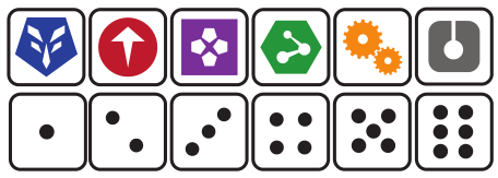 脅威発見!(Thereat Detected!):この目が出たら、ただちにこれらのダイスをスキャナースロットに配置します。すべてのスロットが埋まったら、ただちに新しい脅威カードを1枚引いて配置します(これらのダイスはステップ6まで使用できません)。