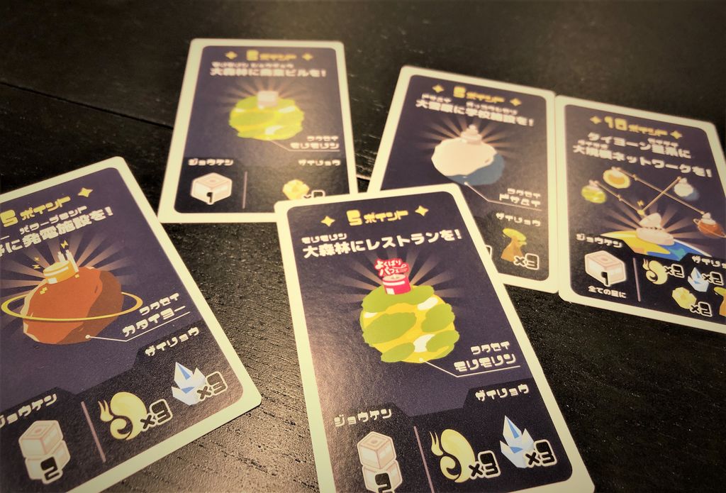 最後の司令カードの条件を満たした風で勝ってるように見えたプレイヤーが、後半大量に建築物を壊して資材カードを持っていかれたりするので、意外と最後まで全員勝ち目があり、終盤2周くらいめちゃくちゃ盛り上がりました。相手を邪魔するような場所に宇宙船を止めたりっていうよりかは、自分がやりたいことをやっていくほうが勝ちに繋がるような気がします!みんな勝手にミスっていくので!!