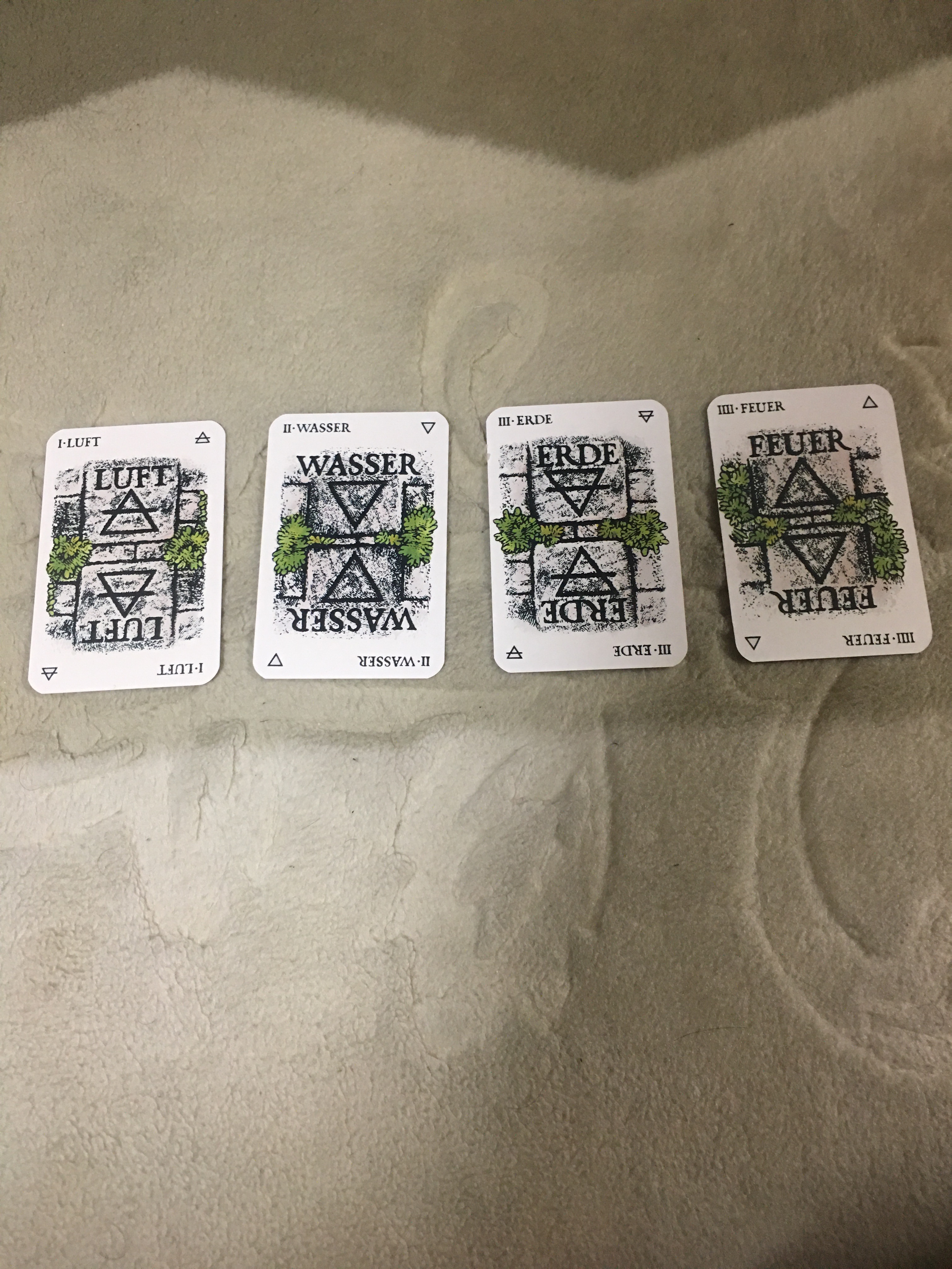 絵が描かれている杖にはトカゲの絵が2つと、石の絵が2つ描かれています。トカゲの絵が出た時には、直ちにサラマンダー・カードを引きます。石の絵が出た時には、自分の石をある位置に置きます。(置き方は後述)