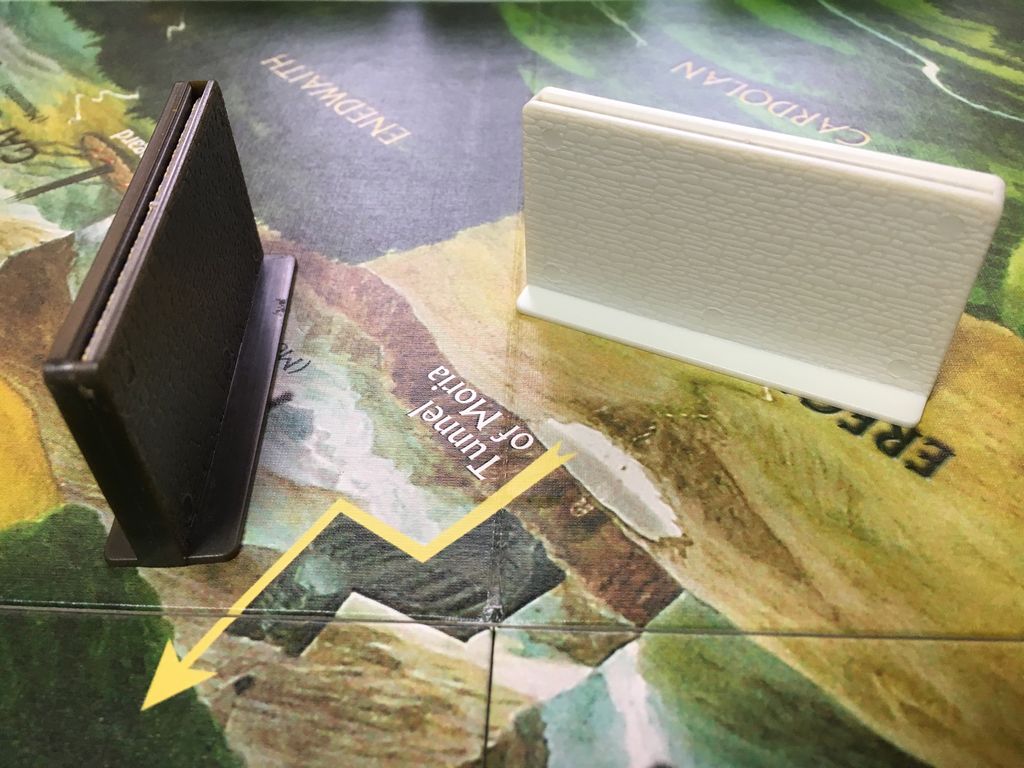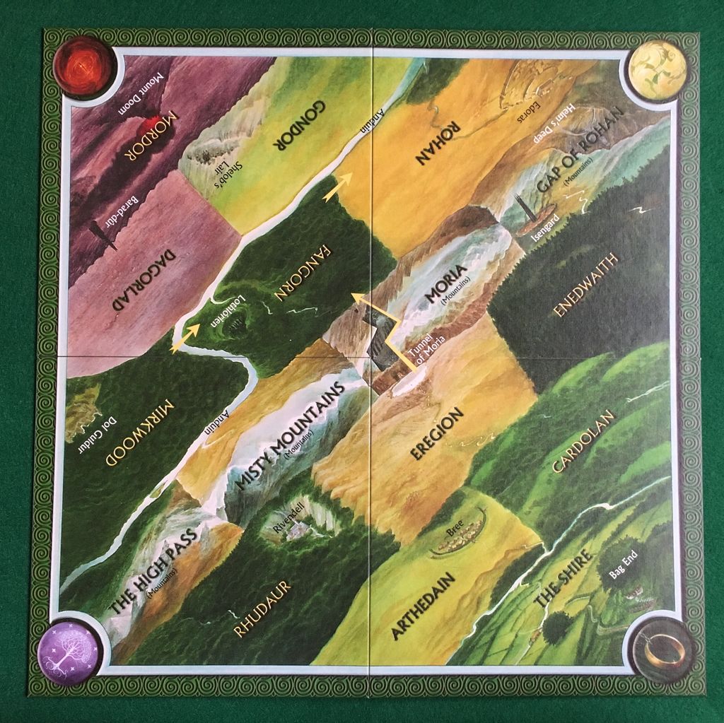 これを交互に繰り返し、善側は「フロド」駒を「モルドール」まで進める、闇側は「ホビット庄」に自駒を3つ送りこむか「フロド」駒を捕らえれば勝利となります。