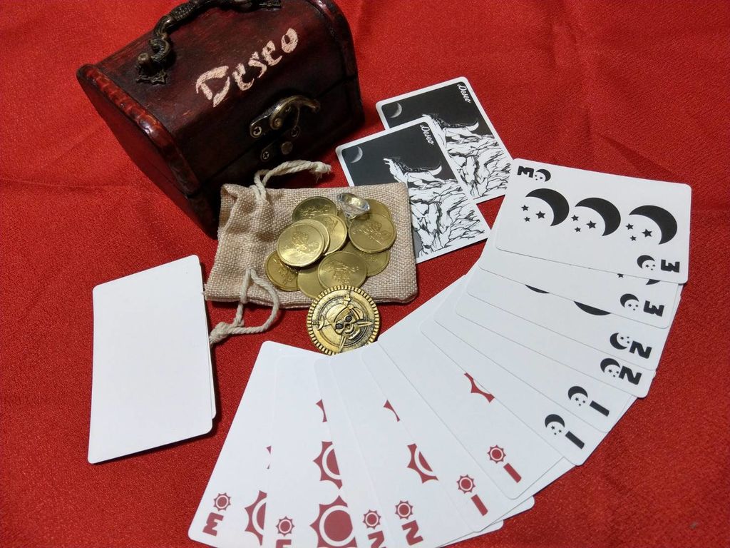 中央に金貨11枚、ダイヤ、髑髏メダルを置く
