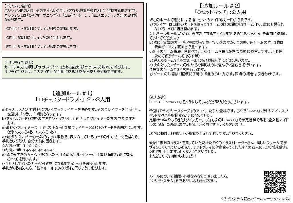 ダイスガールズ第11弾ヤブロンさんのルール/インスト