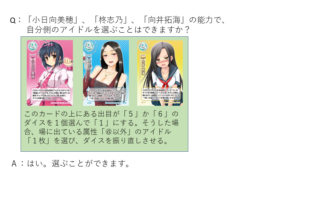 Q:「櫻井桃華」、「高峯のあ」、「堀裕子」の能力で、出目が1下げられる対象の