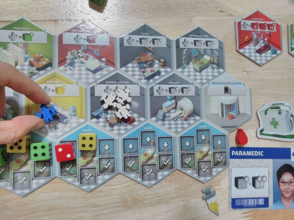 治療方法ですが、ナースまたはスペシャリストの駒を治療室に置くと治療室とスペシャリストの能力が発動します。