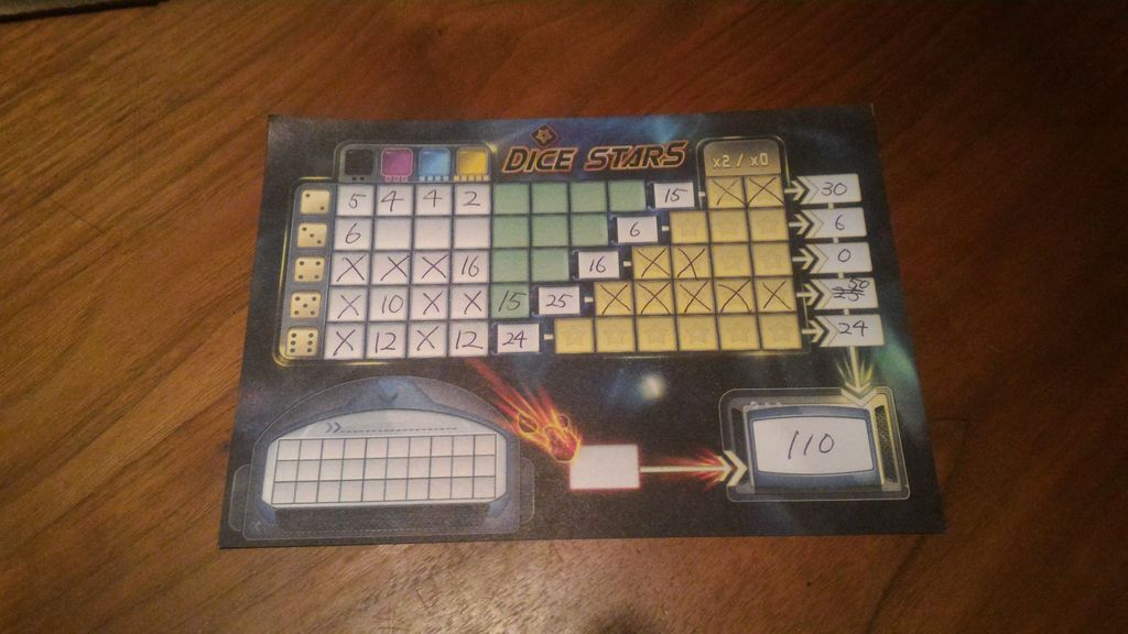 ☆が獲得された時は、次のプレイヤーは場に残ったダイスをリセットできたり、書き方のルールなど細かい所は割愛するが、
