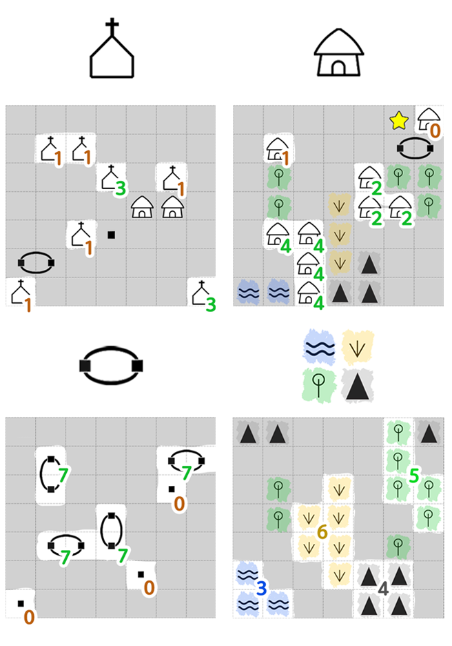 ゲームが終わると、町を比べます。建物、自然、星トークン、そして満足した訪問者たちから、より多くの名声ポイントを獲得したプレイヤーの勝利です。建物は3種類すべて得点ルールが異なります。修道院は他の建物から離れていなければならず、牧場は2つが対になって隣接した時に得点となり、家は密集しながら多様な自然と隣接している必要があります。自然は種類ごとに大きな塊を作ることで、高い得点を獲得できます。