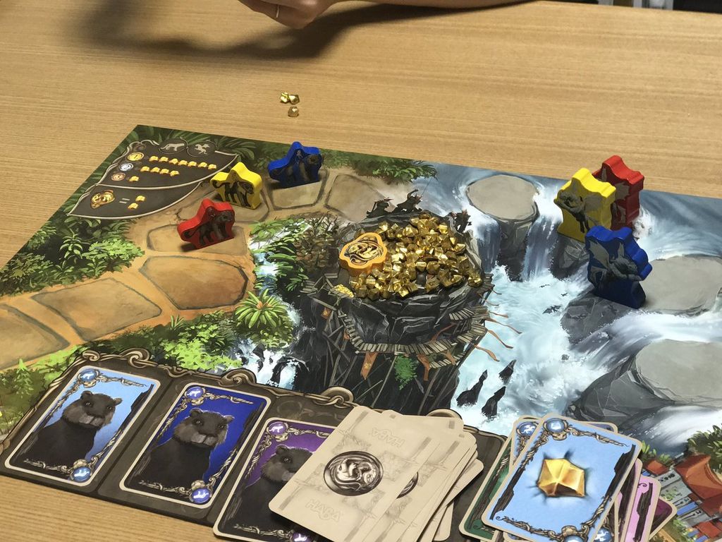 コンポーネントがおしゃれなファミリー向けボードゲームです。カスカリアの英雄たちは、トロルに奪われたアミュレットを取り返すべく、場札をドローしたり手札をプレイして目的地の火山を目指します。