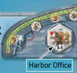 プレイヤーの望遠鏡スペースに港湾事務所があり、まだ島ボードに置いていない場合、通常通り、気球の移動は島の端(海岸)に到達するとただちに停止します(そして余分な移動ポイントは失われます)。