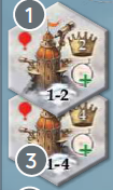 見張り台 気球を移動するときや、次のスタートプレイヤーを決めるときに、プレイヤーはこのタイルの値(1-2または1-4)を選ぶことができます。 さらに、見張り台をアクティブ化すると、ただちに追加の望遠鏡スペースがアンロックでき、そのスペースは彼のエネルギートラックボードの左側または右側に配置されます。この追加のスペースにタイルを配置できるようになります。 この効果は、見張り台が島に配置されるとただちに開始されます。 |