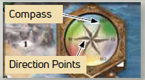 方向ダイスは、このラウンドですべてのプレイヤーが、気球を動かさなければならない方向を指定します(追加のエネルギーを消費しない場合)。明確にするために、プレイヤーはコンパスの矢印をダイスで指定されている方向に合わせる必要があります。
