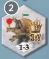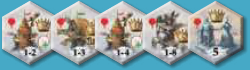 モニュメント「国王夫妻」 次のスタートプレイヤーを決定するとき、このタイルの値は5です。 このタイルが島に置かれた場合、最終スコアリングにおけるモニュメントのマジョリティの決定および勝利ポイントの計算で、2つの個別のモニュメントとしてカウントされます。 |