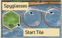 各プレイヤーは自分の色の港湾事務所タイルを受け取り、事務所面を上にして任意の望遠鏡のスペースに置きます。 |