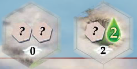 「?」マーク付きの六角形が描かれているスペースに地形タイルが配置した場合、プレイヤーはただちにバッグから別のタイル1枚を引き、それを望遠鏡スペースに配置するか、エネルギーに変換することができます。また、可能であれば、ただちに自分の気球に隣接するスペースに配置することもできます。 |