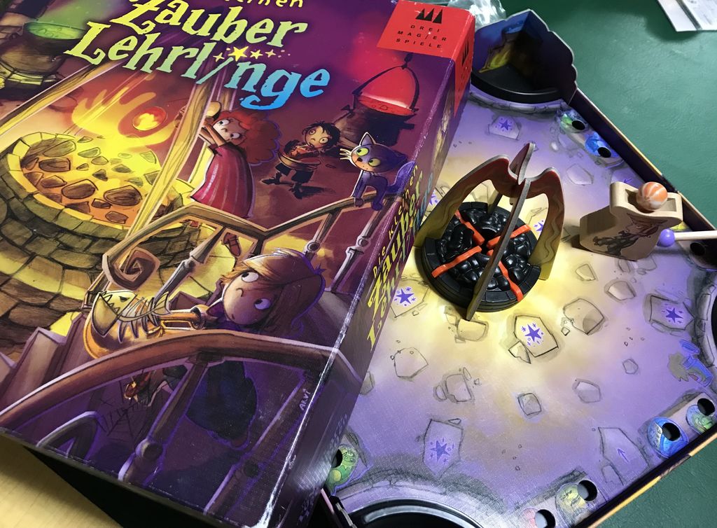 4つの球を入れ終わったプレイヤーの手番は、子供にビー玉を乗せて盤の真ん中にある大釜に入れることで勝利します。