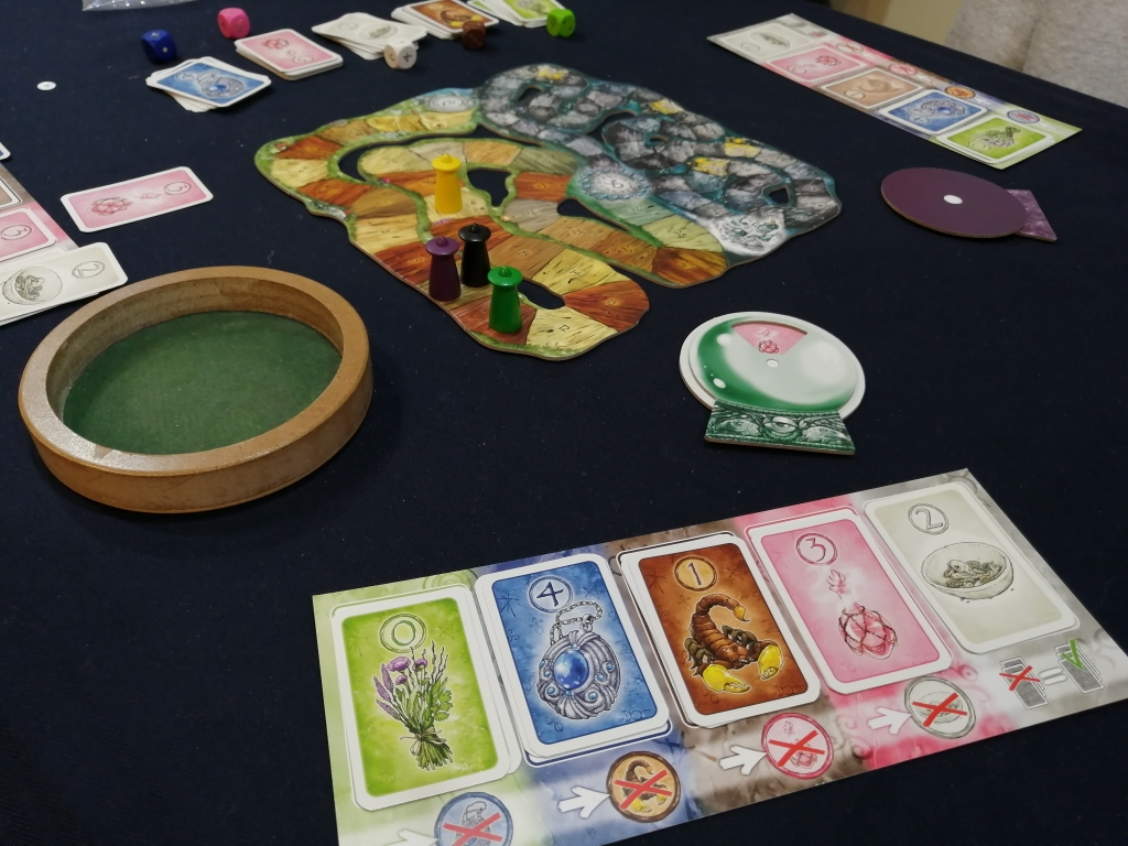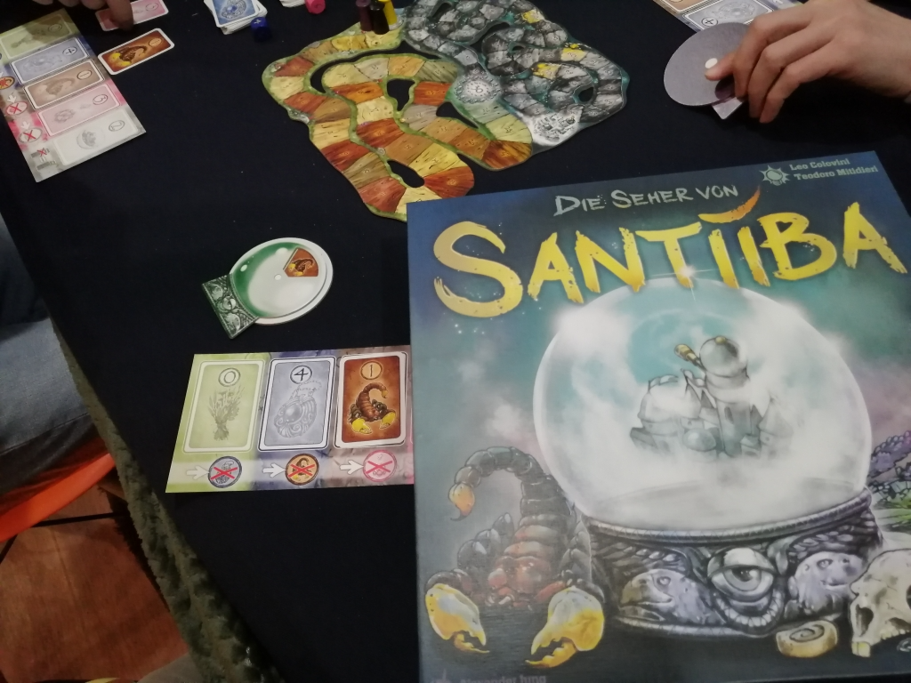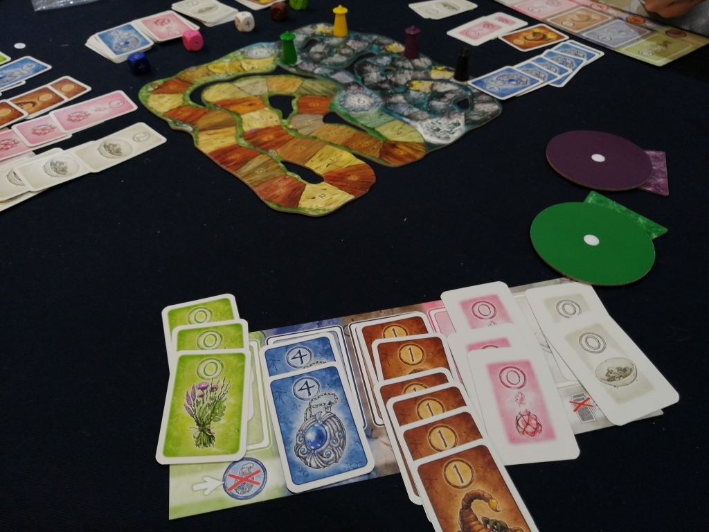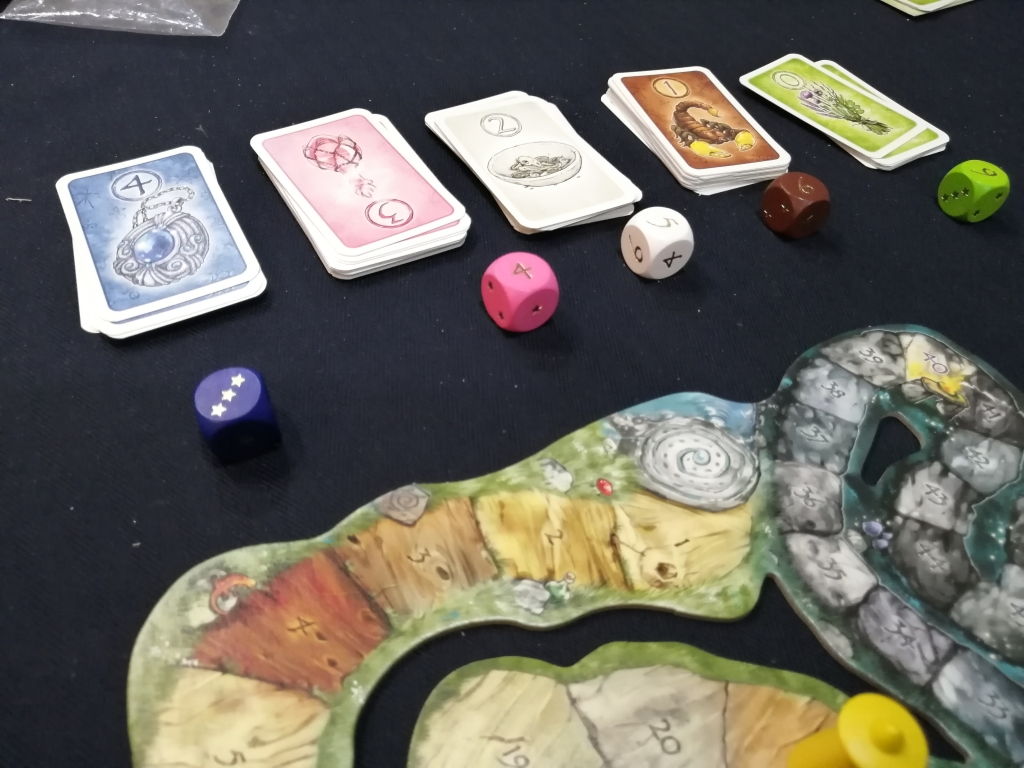 順番に親が移っていき、親以外は預言者になるのを繰り返していき、誰かのコマが30以上を超えたらゲーム終了で、コマが進んだマスは基礎点となり、あとは獲得していたカードの種類ごとにカード枚数を比べ合い、最少プレイヤーはその種類のカードを裏返します(0点になる)。
