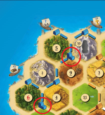 しかしただカタン算が11を超えればいいというわけではなくなるべく資源は満遍なく取るようにしなければなりません。これが思ったより難しい😓おそらく全ての資源を満遍なくかつカタン算の数字が3を超えるのは厳しいでしょう。(カタン算の数字が1や2になるのであれば無理して満遍なくとる必要はありません)