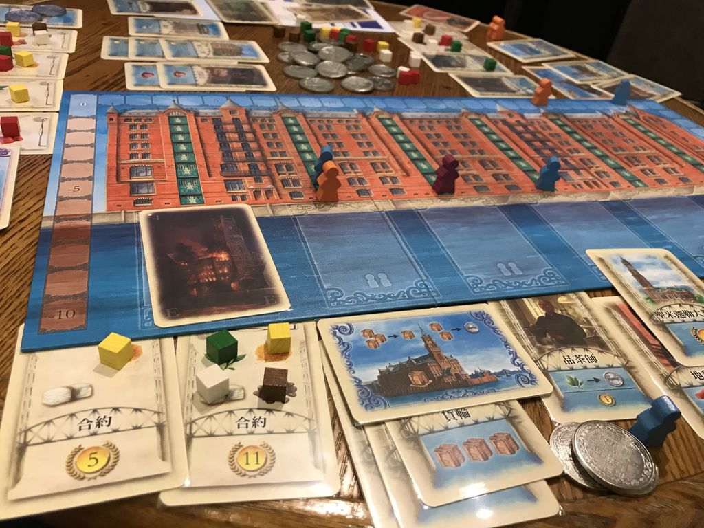 ハンブルグの港湾倉庫街を舞台に、自分の持つ金で資源を手に入れ資源で契約書を達成させたり金に変えていきます。ただ、各プレイヤーはワーカーを使って値段を釣り上げることができるので、その要素を上手く使ってカードが手に入るように流れを作っていくゲームです。