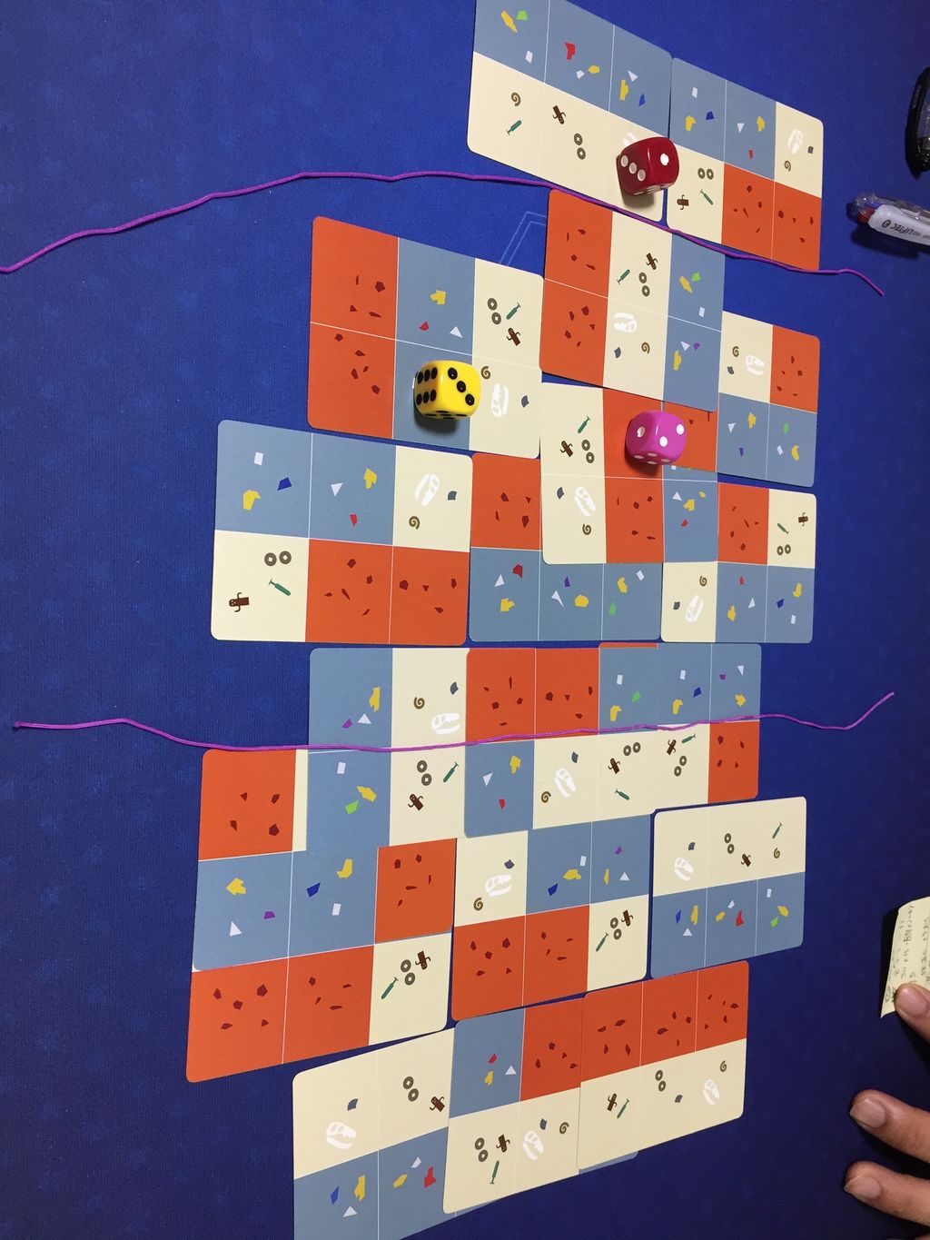 地層が深さによって意味が多少変わってきたり、そのまま資金ではなく、補助金扱いだったり、妙なところで細かいのですが、ゲームはただ掘り進めるだけ、マス数を数えていくのみになってしまい、あまり駆け引きもなく、淡々とした展開になってしまいました。