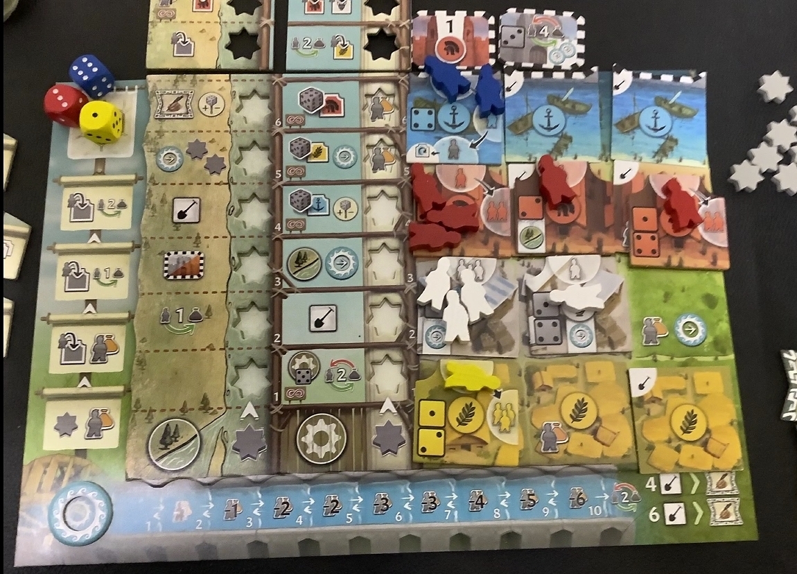 こうしてアクションを進めていき船のコマが5の上のターンが終わったら1年が終わります。