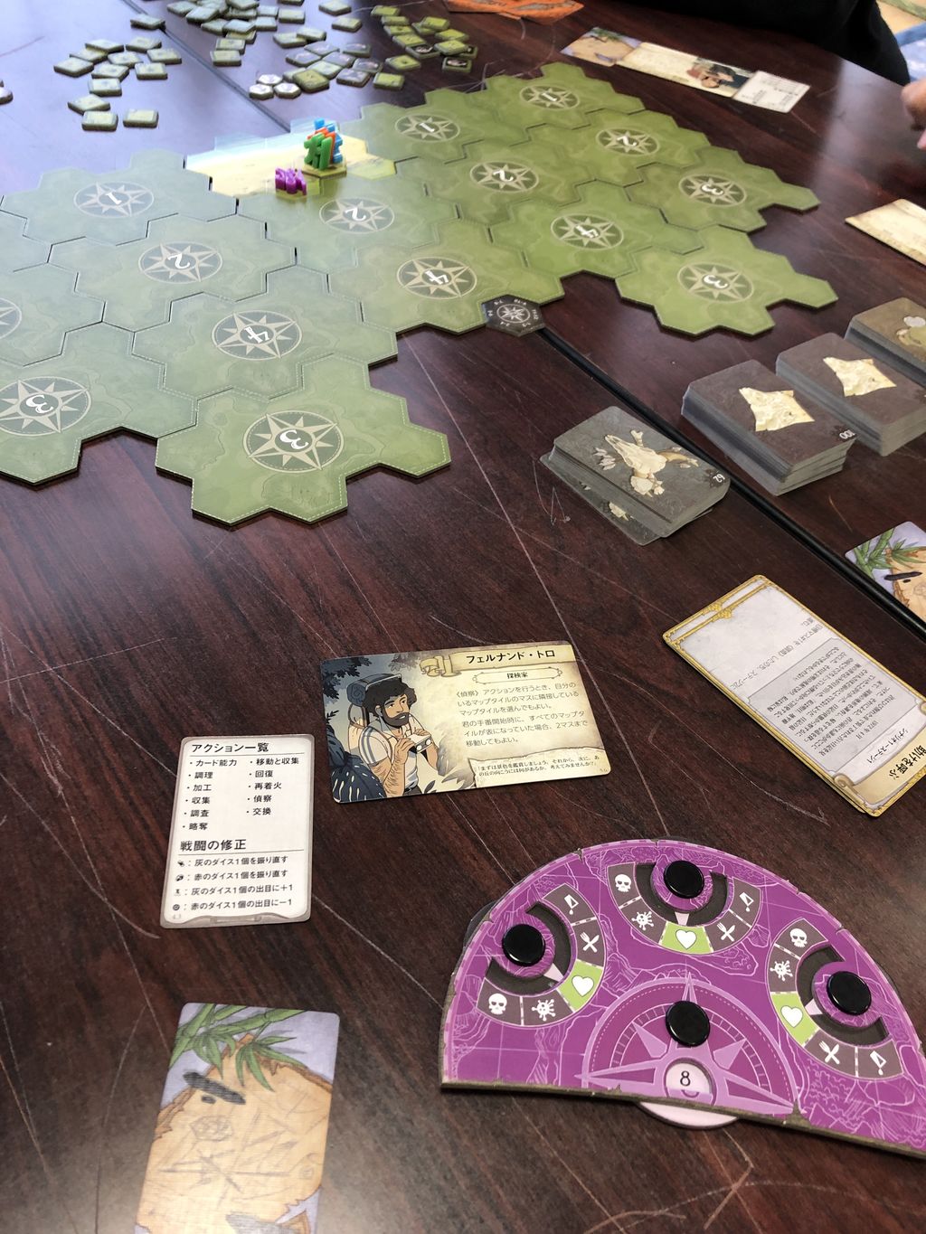 取れるアクションは、カード能力、移動、収集、調理、加工、戦闘、交換と様々です。アクションポイントが8前後持っており、0になるまでアクションを組み合わせて行動することができます。