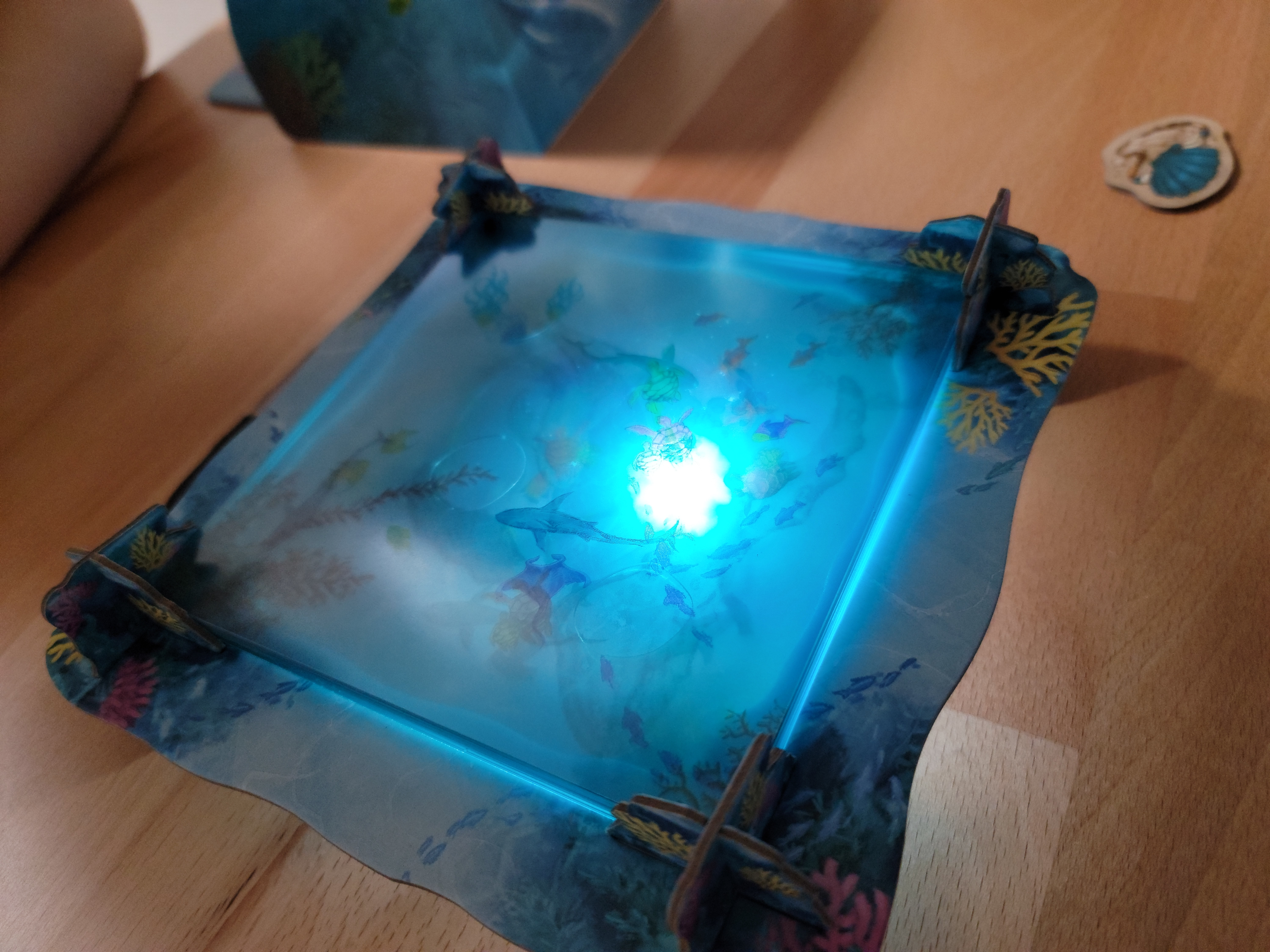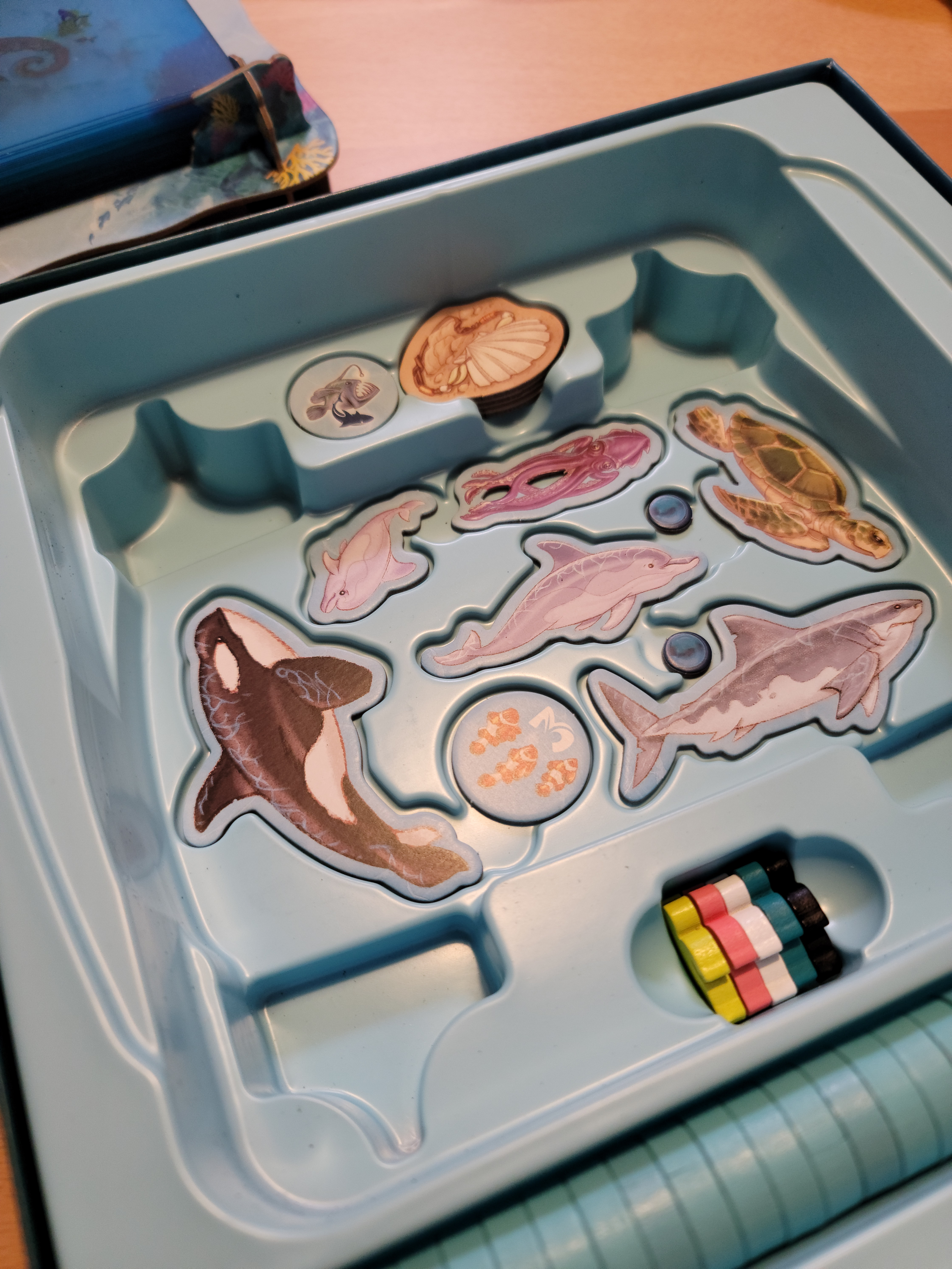 プラスチック板の一枚一枚に素敵なイラストが描かれており、クジラや大タコなどゲームに関係のない海洋生物も雰囲気を盛り上げてくれます。