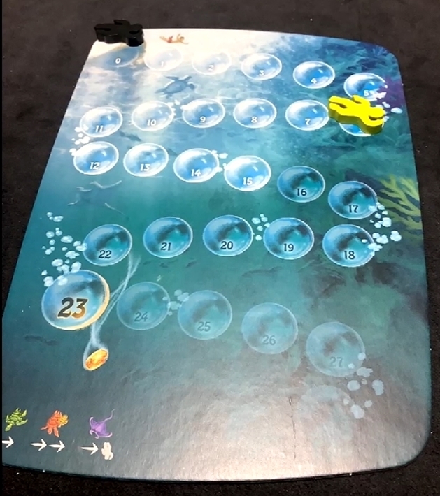 一枚目赤ガメが出ました。これは潜水深度を2マス進める効果があります。
