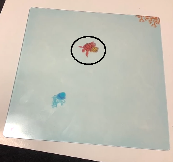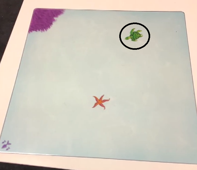 まずこの水面をよく観察したうえで、サメと遭遇する目星をつけていきます。このゲームの障害となるサメとカメとマンタの位置を把握することがカギとなっています。